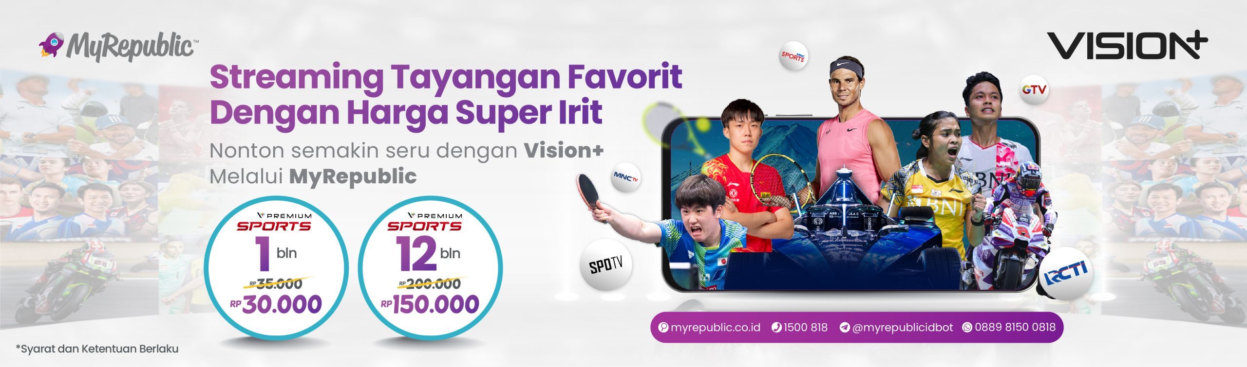 Menghadirkan lebih dari 50 channel dengan kualitas SD hingga HD yang akan memanjakan Anda dan keluarga. Dengan TV Kabel terbaik dari MyRepublic nikmati berbagai pilihan channel mulai Movies, Sport, Kids, News dan masih banyak lagi. Rasakan serunya menonton di TV Kabel MyRepublic.